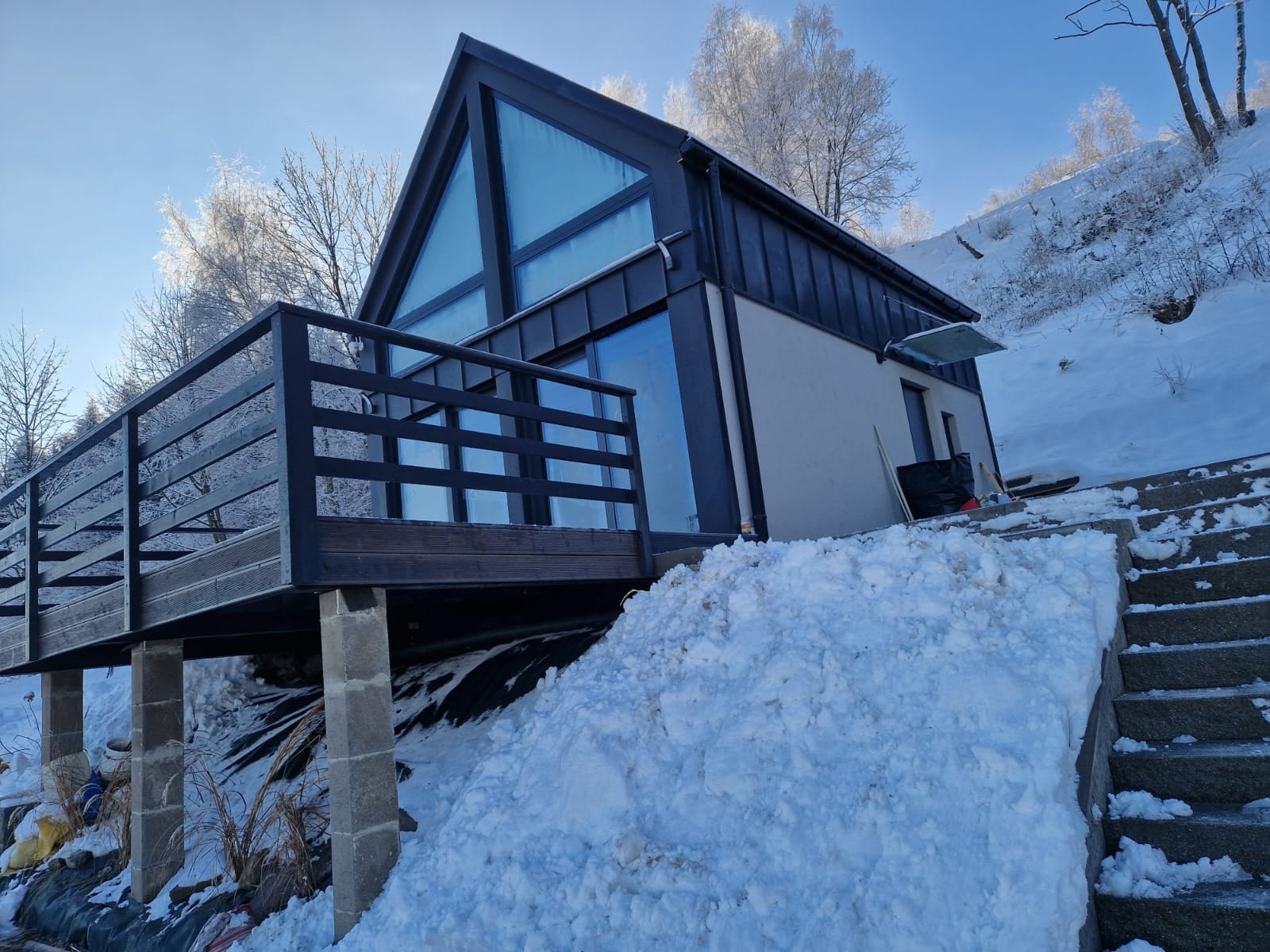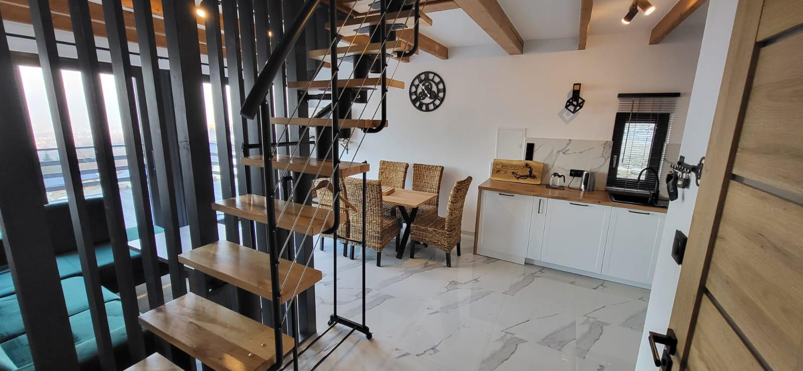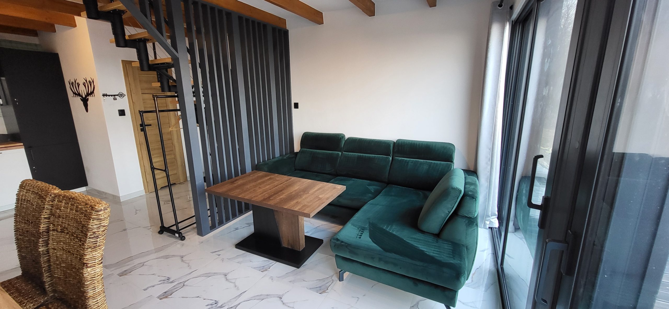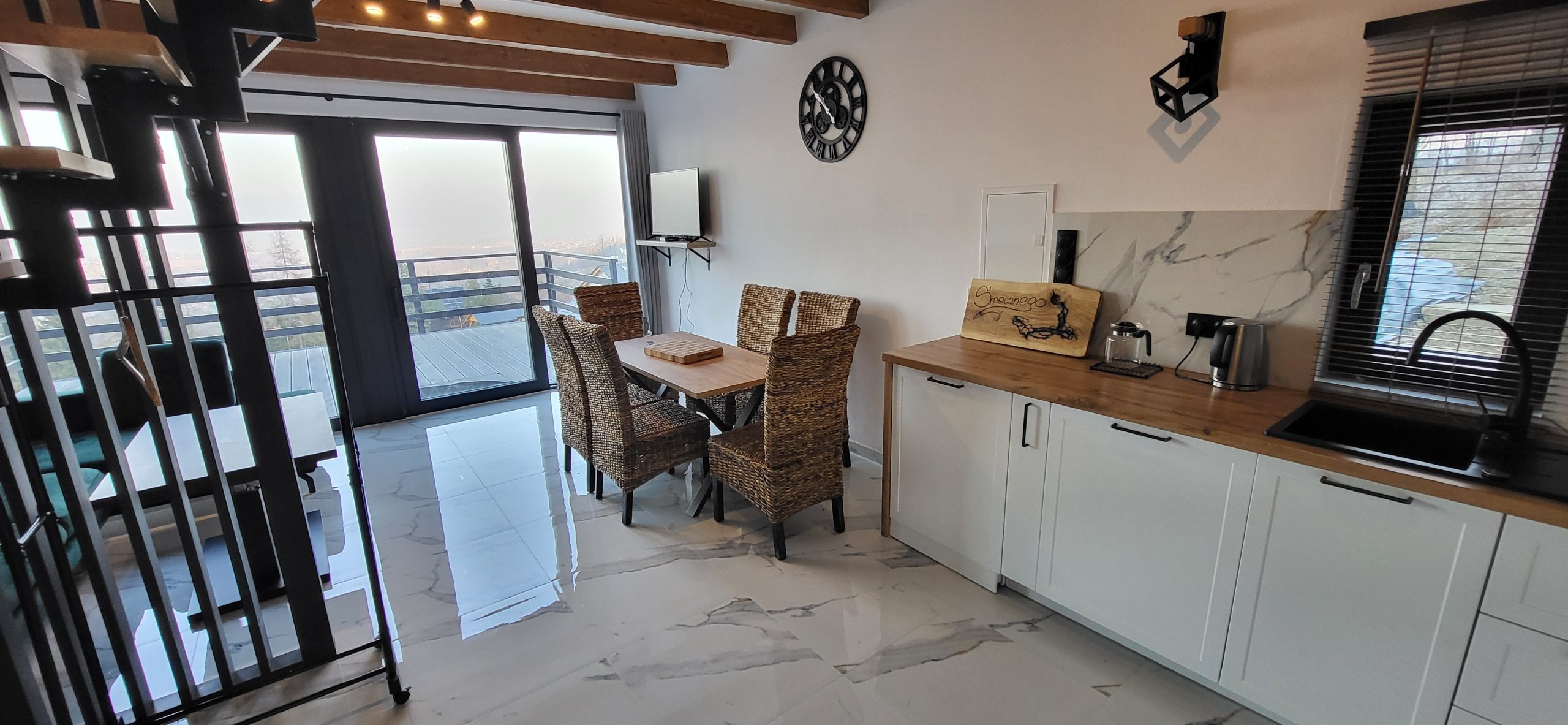Z okien salonu i sypialni rozpościera się widok na panoramę gór.